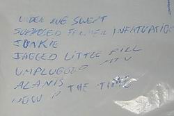 São nomes de discos da Alanis Morrisette. Quem escreveu isso lá? É um enigma? Sei lá. Mas o pior ainda está por vir.