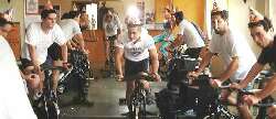 Essa é uma visão "global" da aula. Como hoje é sexta o professor (no centro) fez uma aula especial, onde todo mundo fica em círculo e ele sacaneia todo mundo mandando pedalar em pé (do jeito que estamos na foto) por uns 30 minutos, sem sentar. Na foto, lá estou eu, no canto esquerdo.