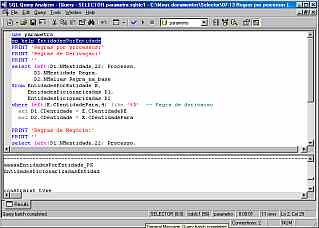 Este sou eu, trabalhando no meu Query Analyzer. Aí, basta fazer o movimento mágico com o mouse...