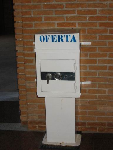 Ah, e tinha essas "caixinhas" do ofertório também. Tá mais pra caixa-forte mas tudo bem.