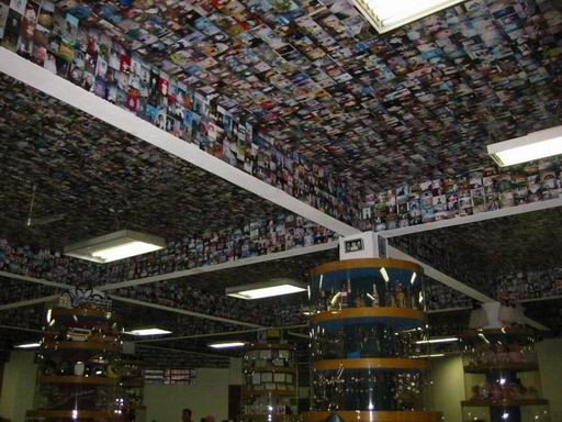 Continuando com as curiosidades, a Basílica tem uma sala das promessas. Você já deve ter visto num Fantástico ou Globo Repórter da vida, é um lugar onde o pessoal que alcançou alguma graça deixa muletas, fotos, objetos diversos, tudo em homenagem à Nossa Senhora. O teto é REPLETO de fotos e por todos os lados há prateleiras com centenas e centenas de objetos.