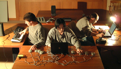 A coisa toda é nerd demais pro meu gosto, mas eu simplesmente AMEI a foto da página inicial do site. Dois laptops, dois teclados MIDI, oito mouses e um joystick!!!!!
