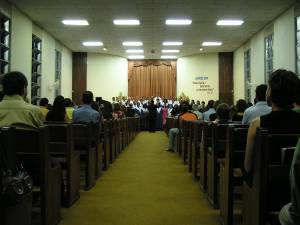Hoje foi o culto ecumênico de formatura da minha irmã. Nunca vi tanta mulher junta, afinal, ela formou-se em nutrição e a turma dela era composta de 36 mulheres e um gay.