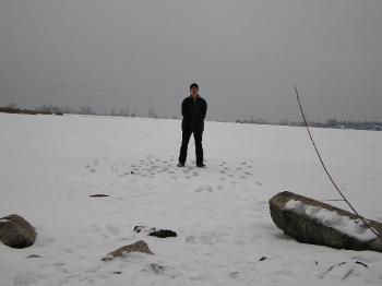 Esta parte do lago está totalmente congelada. E, mais ou menos 600 metros à frente, haviam carros no meio do lago. Abaixo, na foto, eu estou de pé sobre o gelo da beirada.