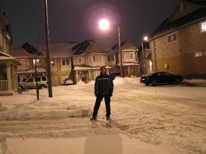Eu, no meio da minha rua cheia de neve