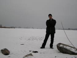 Traje: Três camadas de roupa, gorro, luvas, botas de neve.