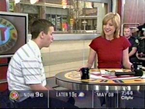 Depois ficamos zanzando pela cidade e achamos o prédio do canal CityTV, que transmite o Breakfast Television. É aquele programa matinal que eu citei no post passado. Bastou um pouquinho de cara-de-pau e deu até pra entrar no estúdio e tirar fotos.