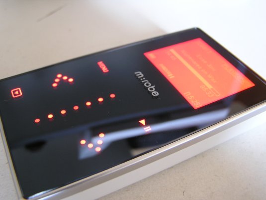 Como você pode ver é, simplesmente, um player. Sem mais firulas, nada de suporte a WAV ou OGG, rádio FM ou gravação de voz. A interface é boa e ele é prático de usar. O maior destaque positivo é que, fisicamente, o m:robe é muito elegante e durável, com corpo metálico e painel frontal de vidro.