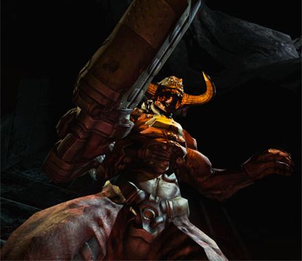 Este é o Cyberdemon, o último chefão. Ele é grande, malvado e precisa de tratamento dentário.