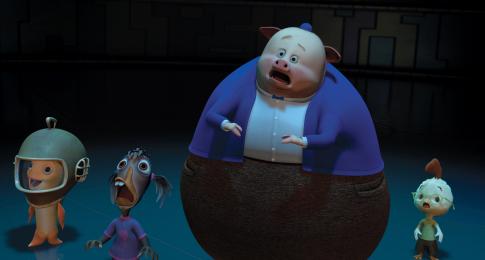 Show de estereótipos de párias da sociedade! O esquisitão (peixe), a menina feia (pata), o gordo (porco) e o nerd loser (galinho)