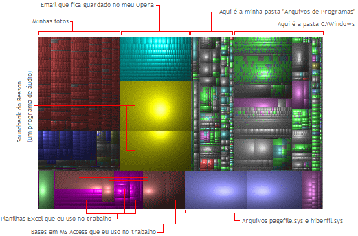 Quando você passa o mouse sobre os pontos coloridos, ele lhe mostra que aquivo é. Olha só como ficou um pedaço do meu disco...