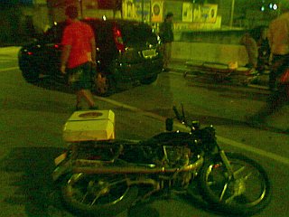 Nesse meio tempo a polícia mandava ver nos formulários de ocorrência. Eles também não pareciam saber o que estavam fazendo: riscaram de giz o local onde a moto e o carro pararam, mas não tiraram fotos ou registraram nada. Depois liberaram o trânsito, e os pneus dos carros que passavam apagaram as marcas de giz. Genial.