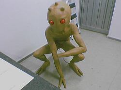 Na terça eu voei de volta pra Belo Horizonte, via Varginha. O (mini) aeroporto tinha duas coisas estranhas. A primeira era um ET na sala de recuperação de bagagens. Seria normal por estarmos em Varginha, a capital dos Extraterrestres, mas era estranho porque o ET não tinha a mão esquerda. Afinal, como diabos ele ia ajudar as pessoas com as bagagens?
