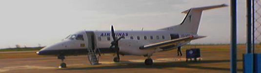 Ele pertence a uma empresa aérea minúscula e recém-chegada no mercado, chamada Air Minas. O "Brasília" comporta 30 passageiros e voa até direitinho. Mas faz um barulho infernal...