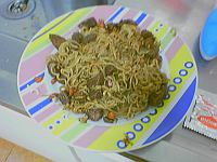 Preparo: Bote os nuggets no forno e a água do Miojo pra ferver. Faça o Miojo normalmente mas sem usar aquele molhinho dele. Retire o miojo da panela e escorra em separado.