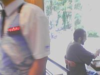 Só no Rio mesmo: fui almoçar num restaurante onde os crachás dos garçons tinham LEDs que ficavam passando mensagens...