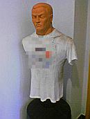 Ele está vestindo uma camiseta com os logotipos dos concorrentes*. Quem quiser pode ir lá a qualquer hora do dia e descer a porrada no boneco, ou seja, na concorrência.