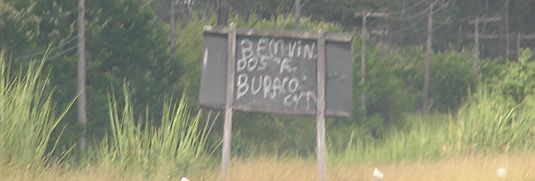 Uma foto que me esqueci: o pseudônimo de "Buraco City", a cidade vizinha, tem origem nesta placa, que fica na estrada, bem do lado da entrada da cidade...