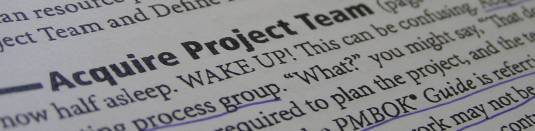 Mas tudo tem seu lado bom. Estes dias em casa estão sendo ótimos para dar andamento na minha meta anual de crescimento profissional, que é: tirar meu PMP (Project Management Professional, a famosa certificação do PMI). Entre uma e outra lavada de louça, eu enfio a cabeça no PMP Exam Prep, também conhecido como "Livro da Rita". A Rita escreve bem, tão bem que ela percebe os momentos em que o assunto fica muito chato e, no texto, manda você acordar e ler o parágrafo anterior de novo.