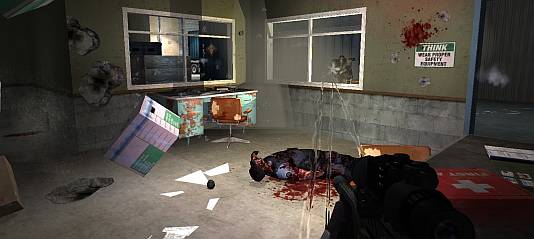Mas falando da jogabilidade: F.E.A.R. deve ter, no máximo, uns cinco tipos de inimigos diferentes. E as fases são meio repetitivas. Mas tudo isso é compensado pela extraordinária inteligência artificial dos oponentes. Extraordinaria MESMO. Os combates ficam divertidíssimos porque os caras se escondem, tentam dar a volta e te emboscar pelos flancos, usam granadas pra te fazer sair de onde você estiver se escondendo, e por aí vai. É tão divertido quanto jogar com oponentes humanos pela Internet.