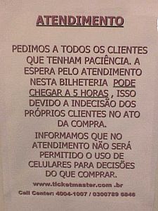 Isso não é simplesmente um cartaz. É uma ofensa aos clientes e um atestado de incompetência do Ticketmaster. É como se ele dissesse: "nosso atendimento é uma droga e a culpa é toda sua".