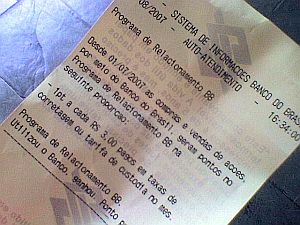 Agora há pouco fui ali tirar um dinheiro num caixa eletrônico do Banco do Brasil e tive uma surpresa: agora a máquina imprime um spam pra você!