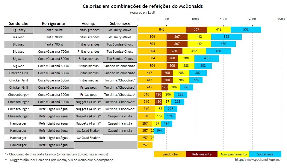 Voltei pro hotel, baixei a planilha do site oficial do McDonalds, conjurei os poderes de Microsoft Excel e tive revelações bem interessantes, como por exemplo os...