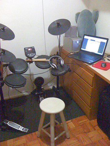 Mas na época acabei cismando que ter uma bateria era um luxo inalcançável – basicamente porque é um troço muito grande, caro e que eu só poderia ter se não morasse em apartamento, por causa do barulho. O tempo, os milagres da microeletrônica e o casamento com uma esposa bastante compreensiva foram reacendendo a vontade.