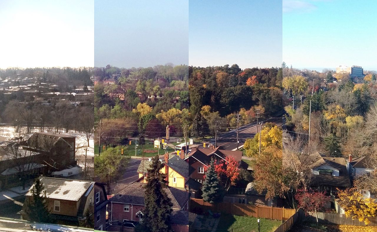 Ao longo do ano eu tirei umas fotos da vista da minha janela e fiz a montagem aí embaixo (clique para ampliar).