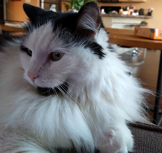 Agora já vamos pra duas semanas de gata em casa e ela já está confiante o suficiente pra perambular por onde quer - embora ainda tenha seus cantinhos preferidos. Pavlov está morrendo de ciúmes da confiança dela, mas está aprendendo a dividir a atenção. Tirando uma ou outra provocação eventual, ambos já convivem super bem, a ponto de poderem dormir conosco e tudo.