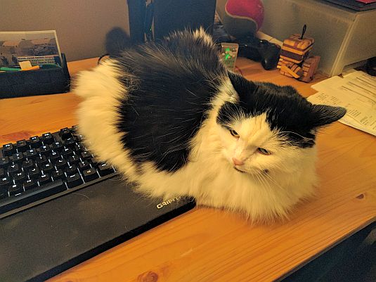 "Agora é só eu chegar perto da gata e ela me morder, ou ela se desesperar com Pavlov, e aí acaba essa viagem errada de ter gato", pensava eu, tentando achar uma saída lógica e honrosa pra minha situação. Cheguei perto dela, ela me olhou de volta com aquela cara de "ei, eu conheço você, humano". Falei um "oi" (em inglês, afinal ela é canadense) e fui tocá-la pra ver como ela reagia. Foi quando finalmente paramos de fazer contato visual, porque ela fechou os olhinhos pra ficar curtindo o cafuné. E então, enquanto pensava "me fudi", aprendi que dá pra sentir amor e desespero ao mesmo tempo.